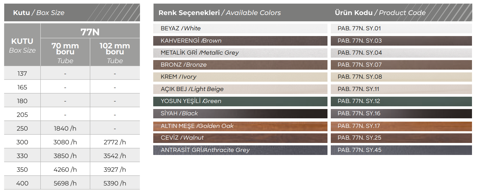 Bir metre yükseklikteki lamel sayısı (adet)/ Number ofslatsper one meterheight (pcs)